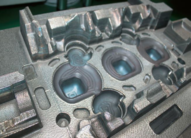 Was die DMT Technologie in Bezug auf Herstellung von Gussformen mit interner 3D Kühlmittelzufuhr besonders von "powder bed fusion" unterscheidet, ist die Möglichkeit, nicht nur neue Gussformen herstellen sondern bereits existierende Gussformen mit neuen Kühlkanälen versehen zu können.